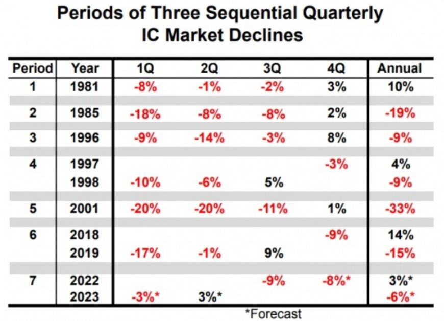 По словам аналитика, мировой рынок чипов заключил контракт только на шесть кварталов подряд с 1970 -х годов.