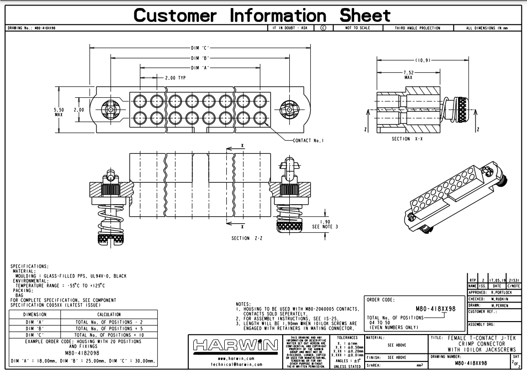 Идеально подходит для использования с M80-2060005 T-контактом (22 AWG), но также может использоваться с другими контактами с обжимом женского сигнала из диапазона данных.