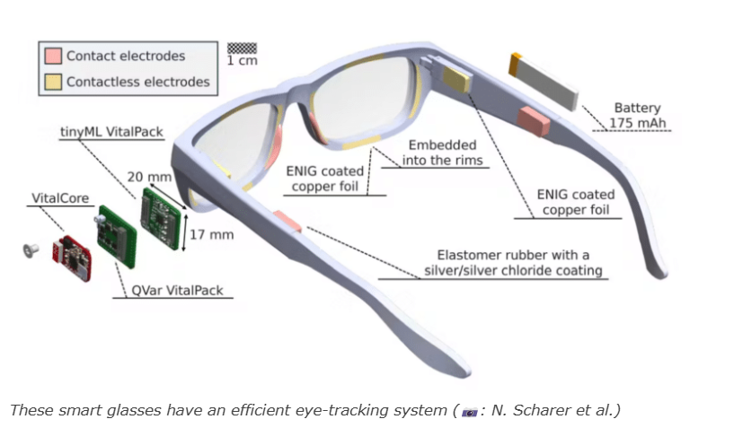 Команда Eth Zurich разработала Electrasight, неинвазивную гибридную контактную систему и бесконтактную систему отслеживания глаз, которая может работать непосредственно на интеллектуальных очках.В отличие от более ранних решений на основе EOG, Electrasight предлагает повышенную точность для отслеживания глаз.